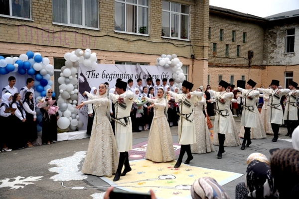 В селе Калининаул состоялся торжественное мероприятие посвященное последнему звонку, на  празднике артисты ансамбля показали  два ярких танцевальных номера.